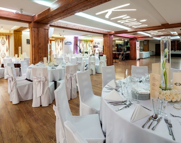 Kraina Smaku to nie tylko doskonała baza noclegowa w Zakopanem i regionalna restauracja Kryjówka – to także świetnie zorganizowana sala weselna na Podhalu. Duża sala weselna Bioło Izba pozwala na organizację przyjęcia nawet dla 380 osób. Sala jest przestronna, jednopoziomowa i urządzona w neutralnym stylu, łączącym nowoczesność i góralski folklor. Autorska kuchnia Grzegorza Lelka jest obietnicą wytwornych dań, bazujących na lokalnych produktach, które następnie serwowane są gościom w elegancki sposób. Bioło Izba umożliwia dwa rodzaje ustawienia stołów: